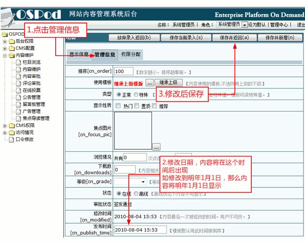 每条新闻都有发布时间,发布时间决定了新闻的排序,这个时间默认是新闻被添加的时间,当然也支持手工来做调整。