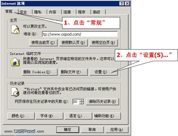 b:点击常规选项下面的 internet临时文件 的“设置”按钮。