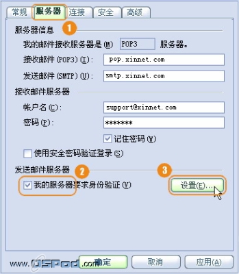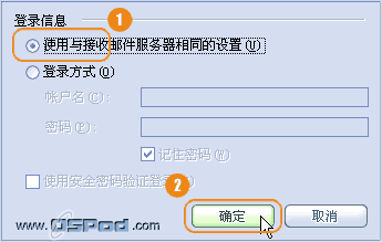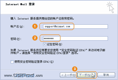 注意:在登录方式上填入帐户名时,一定要写包括域名的完整的帐户名。(例如:service@ospod.com)