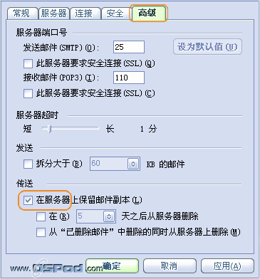 (11)注意:此时接收邮件,服务器的信件会全部下载到您电脑的硬盘里。如果您需要在收信后的同时,在服务器上保留备份,以此可以在其它电脑上或直接到网页上看信,请您按以下步骤设置: