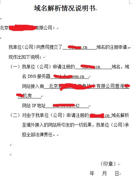 其次,如果cn域名的网站服务器在境外(例如OSPod的服务器在香港),如果机房不提供备案,可以可以填写《域名解析情况说明书》,这个说明书是说明您的cn域名是用于境外解析的(就是网站服务器在境外,例如OSPod的服务器在香港,也算是境外);通过后就可以解析了。