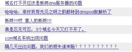 月25日消息,有用户反应,早上8点半自己的网站无法打开,我们随后进行了调查,发现新网部分地区的dns出现问题,发生此次故障的原因未知。在2010年不到2个月时间里作为中国最大的域名商新网dns出现了四次故障,实在让人担忧。