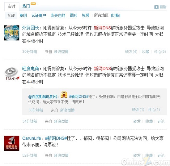随后有新网客服称,“从今天6时许,新网DNS解析服务器受攻击,导致新网的域名解析不稳定,技术已经处理。但攻击解析恢复正常还需要一定时间,大概在4-48小时。”
