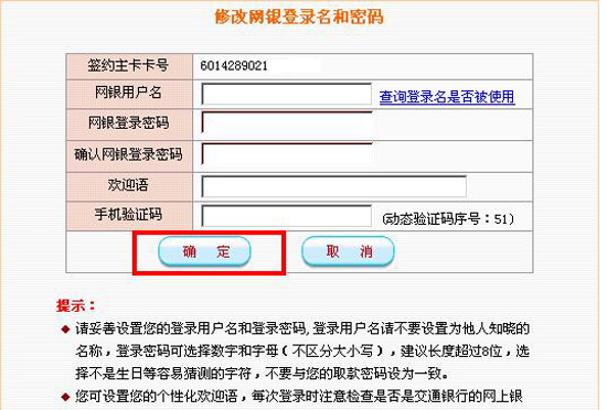 登录交行个人网银www.95559.com.cn,选择“手机注册用户登录”,您需自行设置网银用户名及登录密码。具体操作如下: